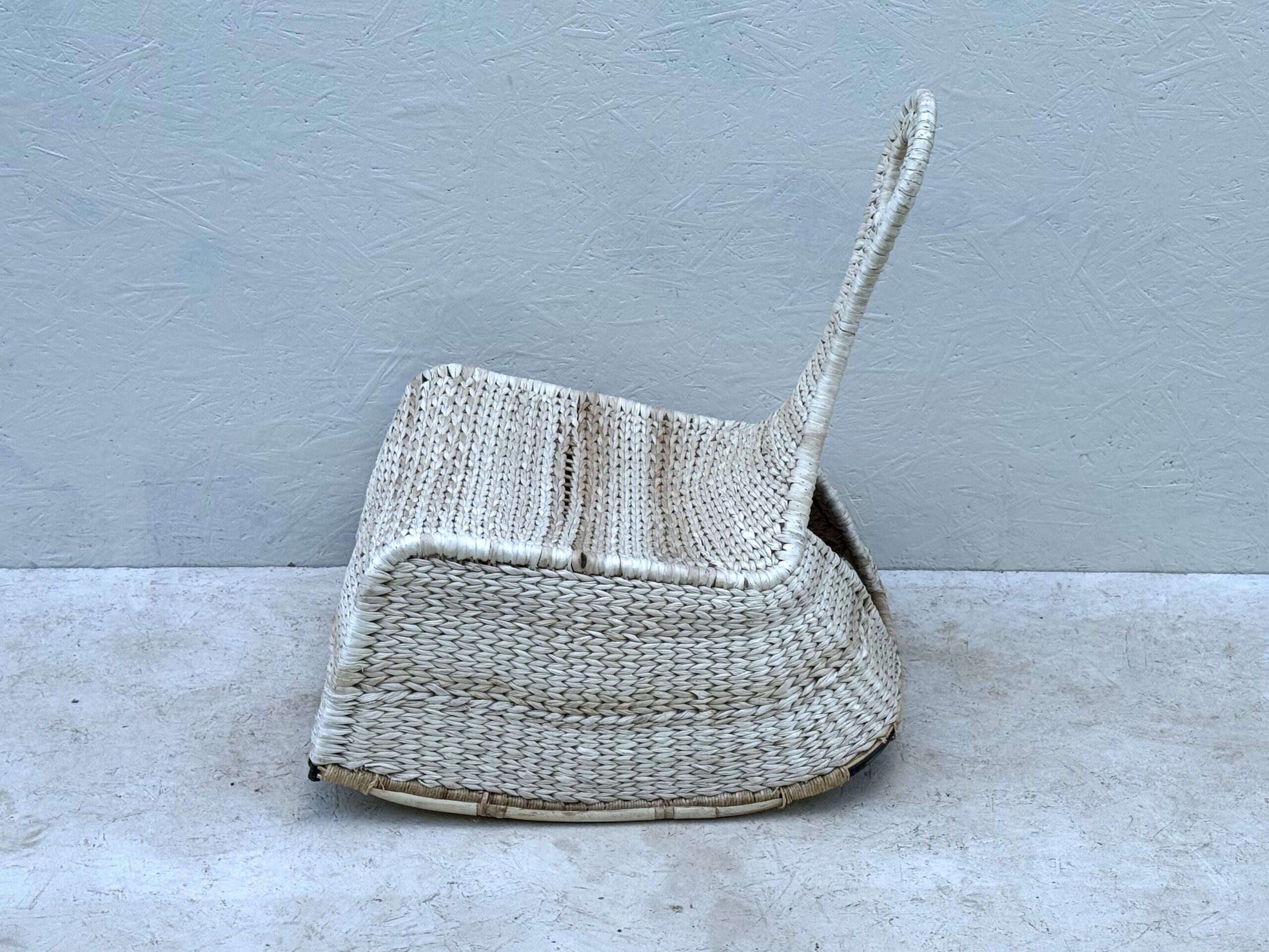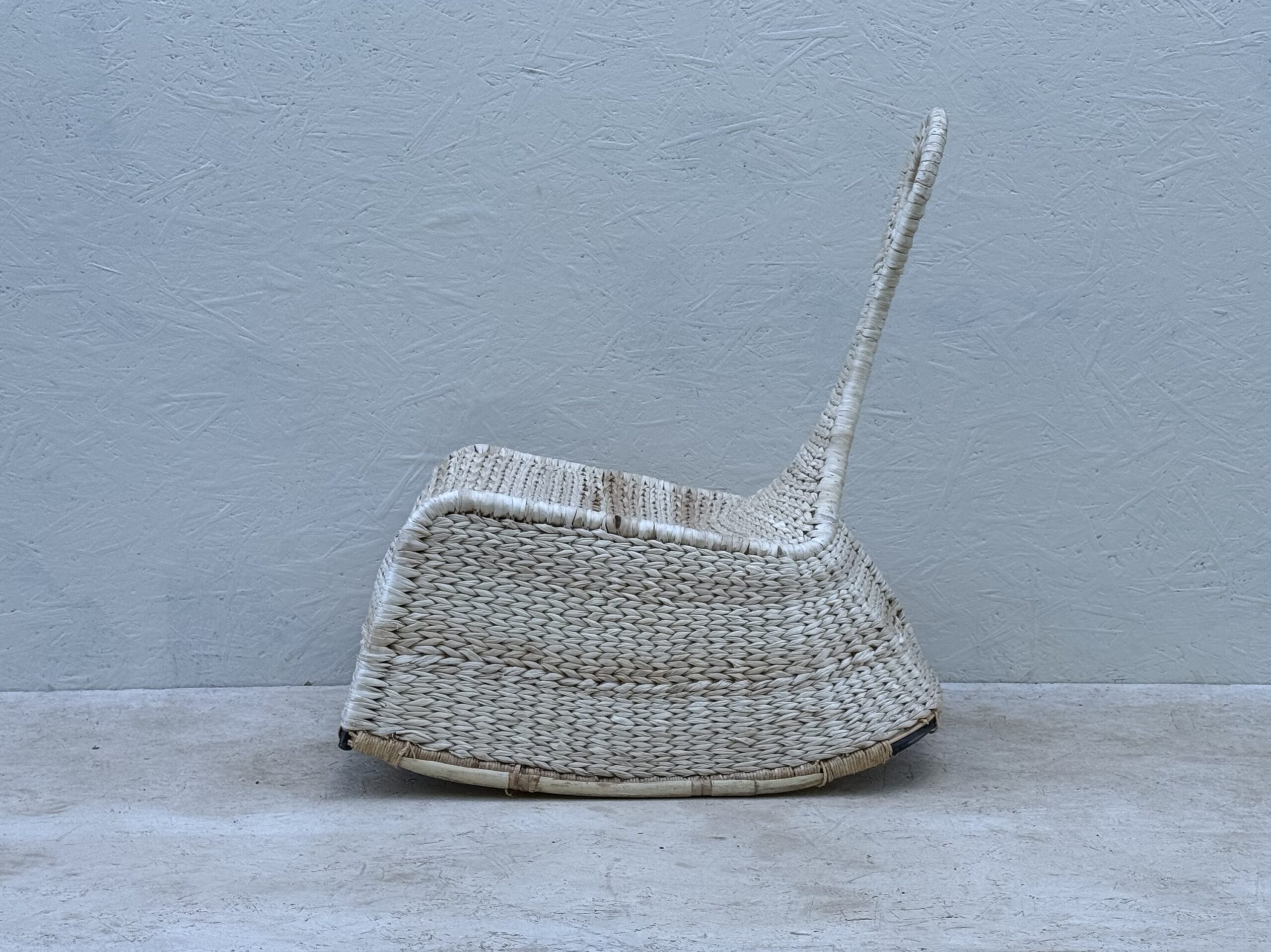 A distinctive Gullholmen rocking chair designed by Maria Vinka as part of IKEA’s PS collection. The collection spotlighted forward-thinking design concepts from leading contemporary designers. Vinka’s Gullholmen is celebrated for its sculptural form and organic presence, merging Scandinavian modernism with natural materials.