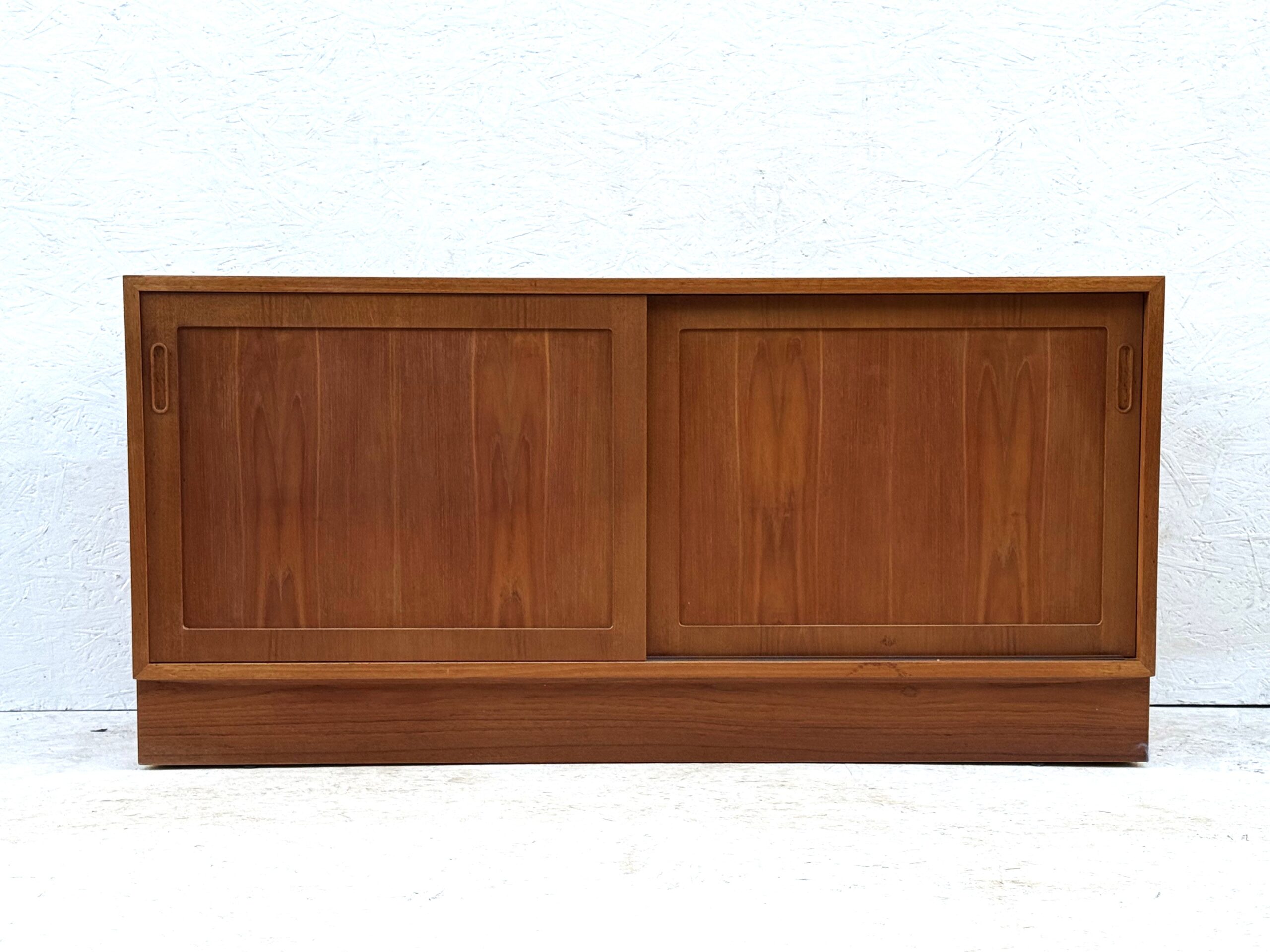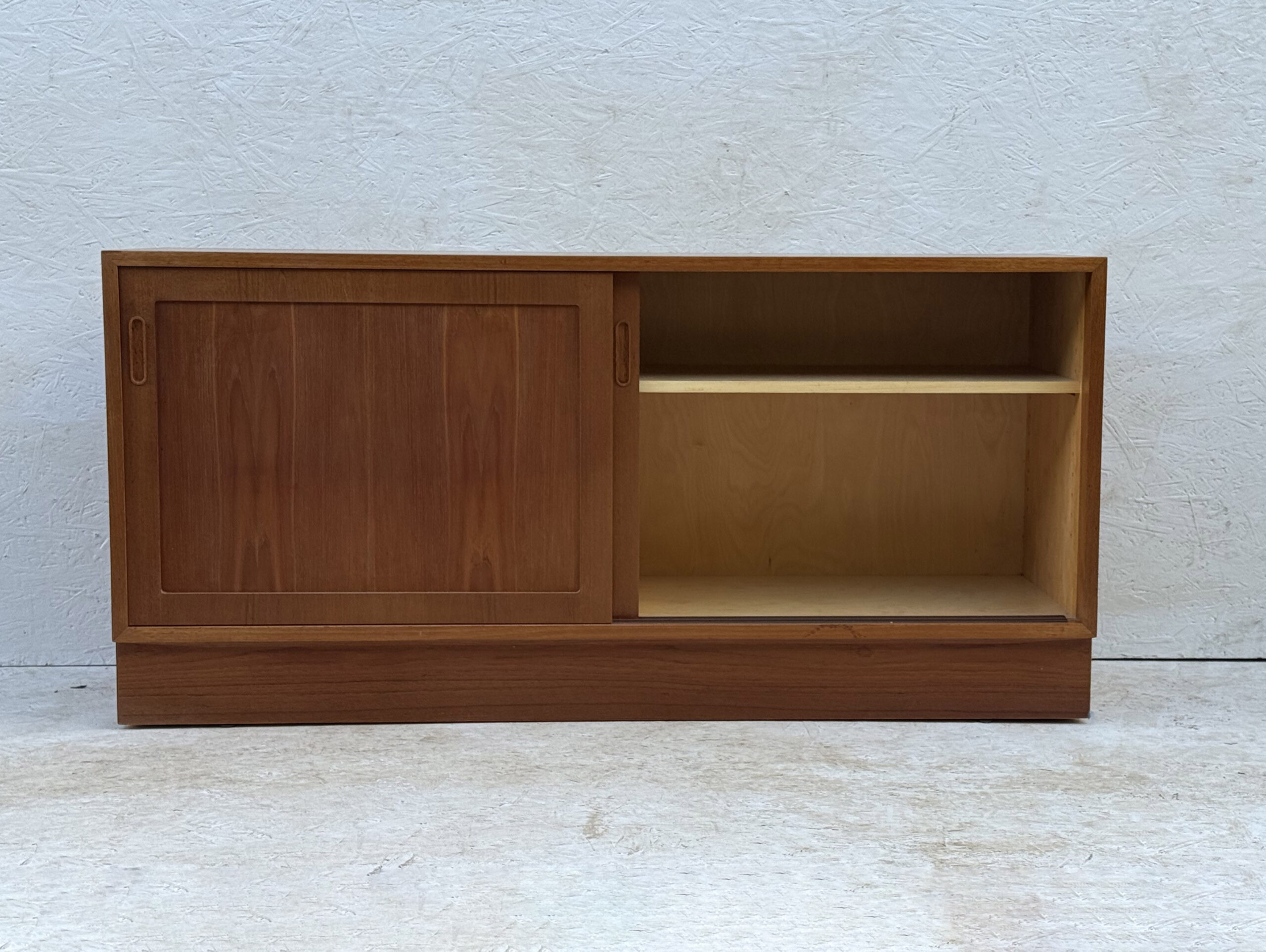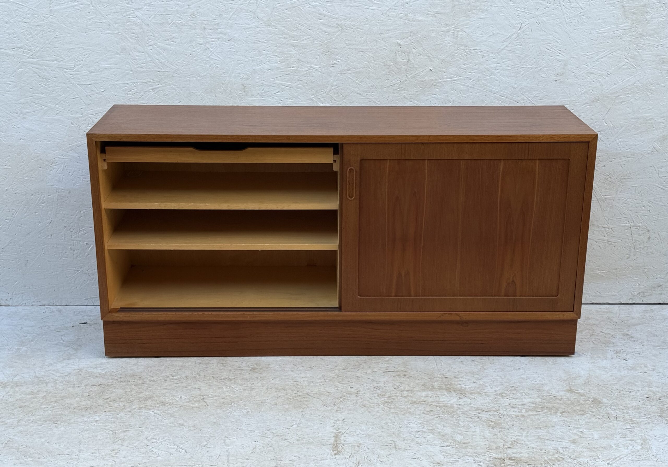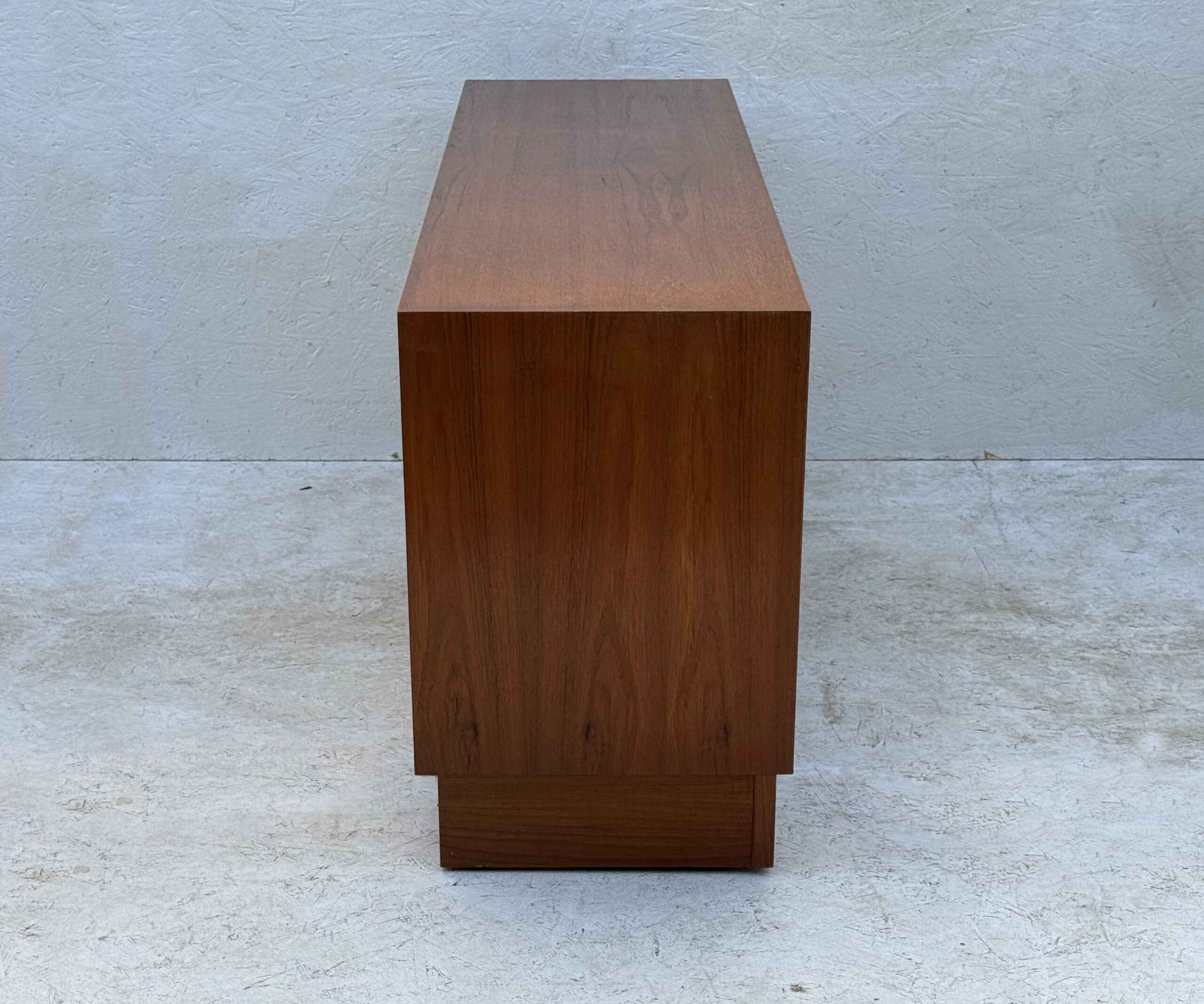 A timeless piece of Scandinavian design, this elegant teak sideboard by Poul Hundevad embodies the clean lines and understated sophistication of mid-century Danish craftsmanship. Measuring 139cm wide, 43cm deep, and 67cm high, its compact proportions make it ideal for both spacious interiors and more modest settings.