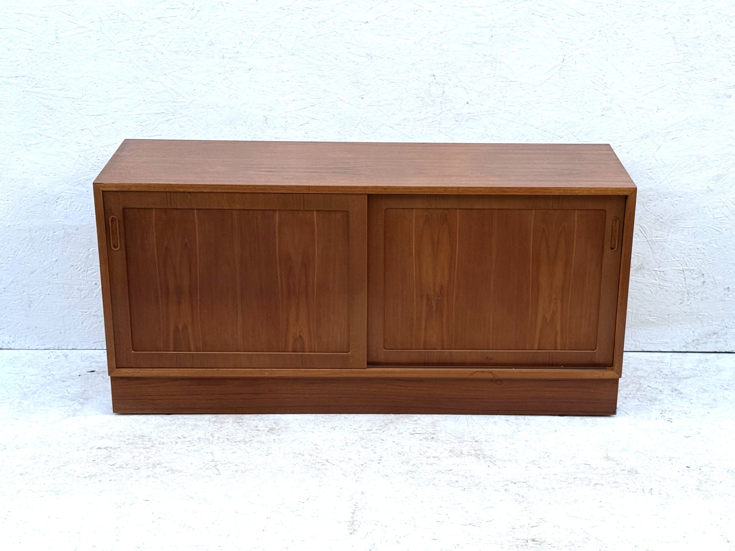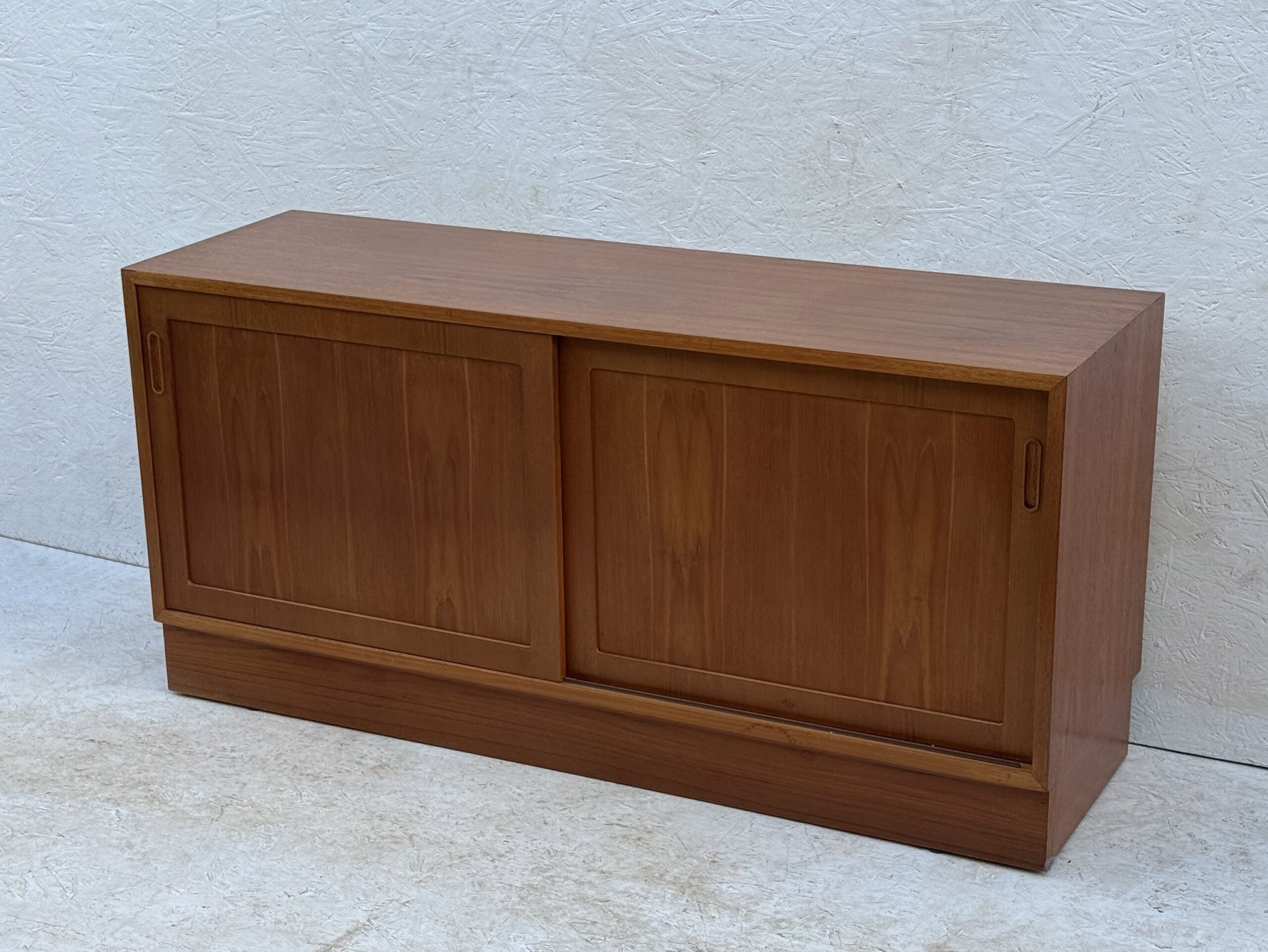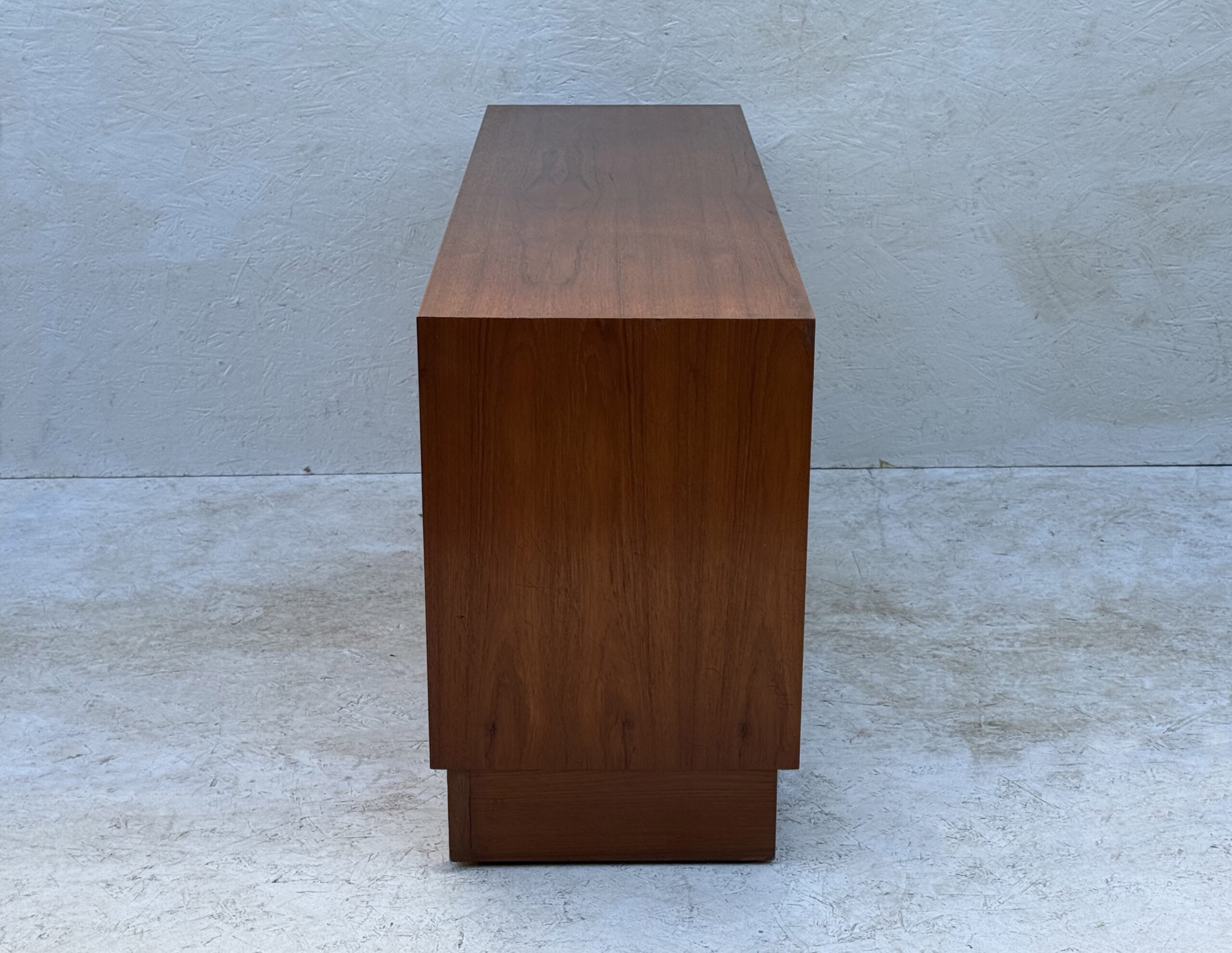 A timeless piece of Scandinavian design, this elegant teak sideboard by Poul Hundevad embodies the clean lines and understated sophistication of mid-century Danish craftsmanship. Measuring 139cm wide, 43cm deep, and 67cm high, its compact proportions make it ideal for both spacious interiors and more modest settings.