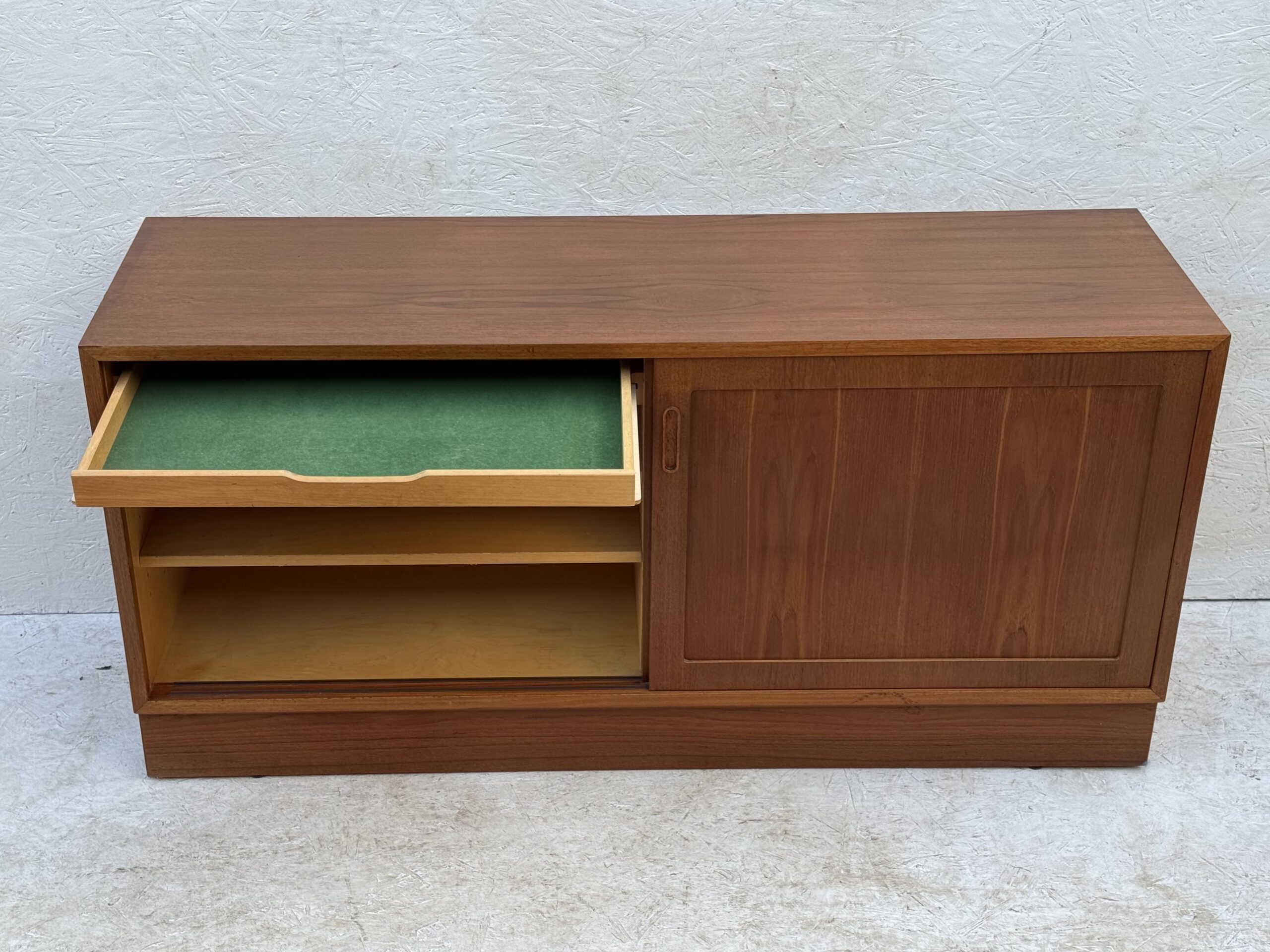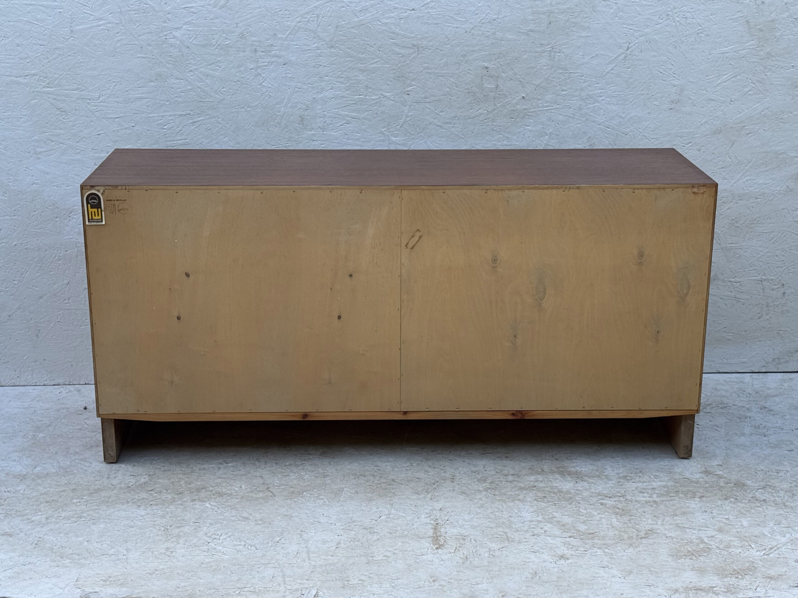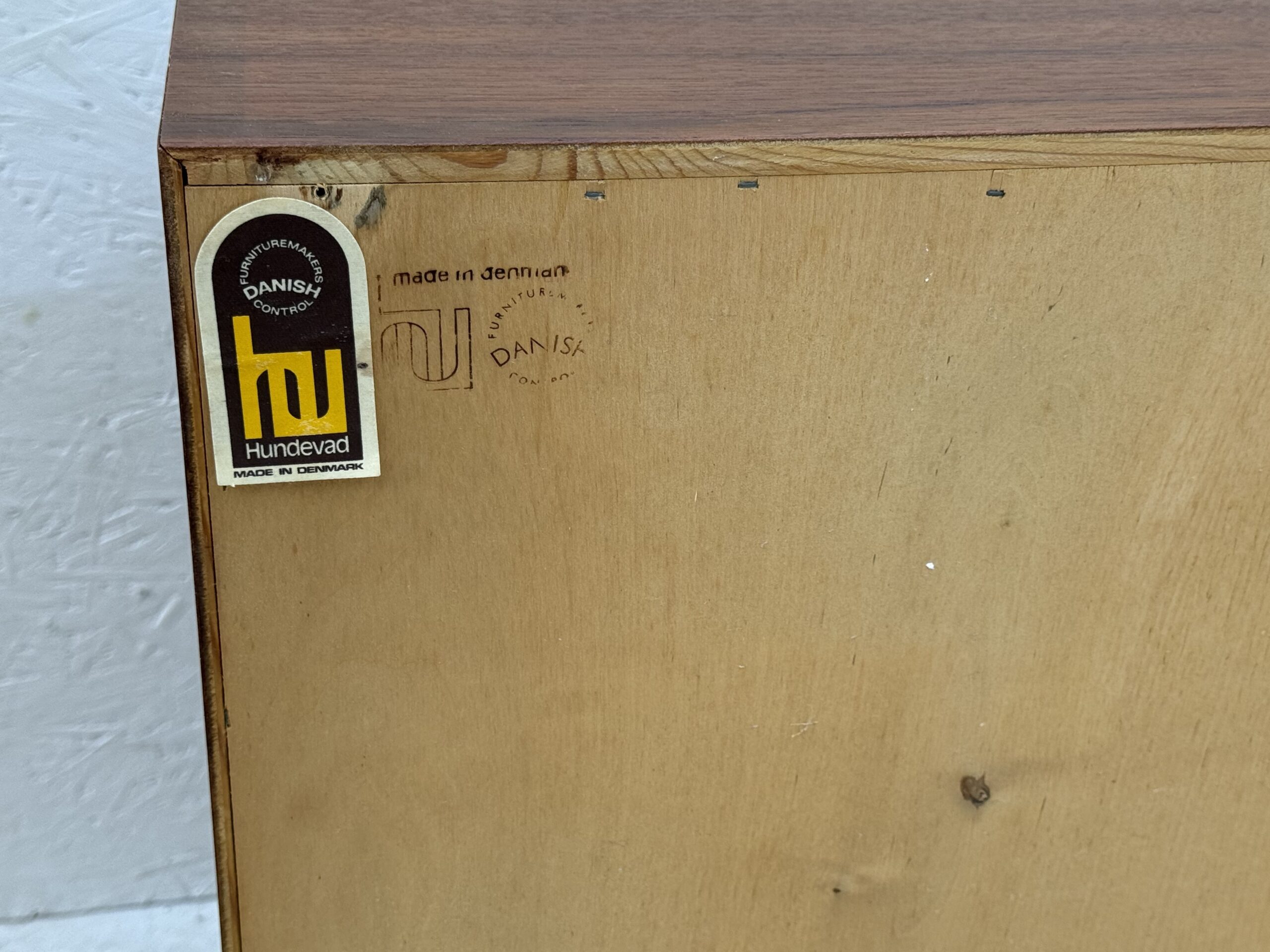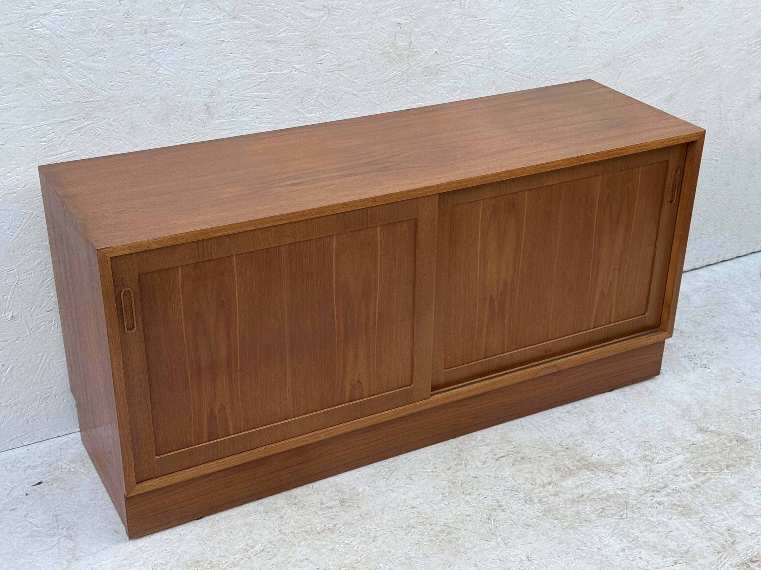 A timeless piece of Scandinavian design, this elegant teak sideboard by Poul Hundevad embodies the clean lines and understated sophistication of mid-century Danish craftsmanship. Measuring 139cm wide, 43cm deep, and 67cm high, its compact proportions make it ideal for both spacious interiors and more modest settings.