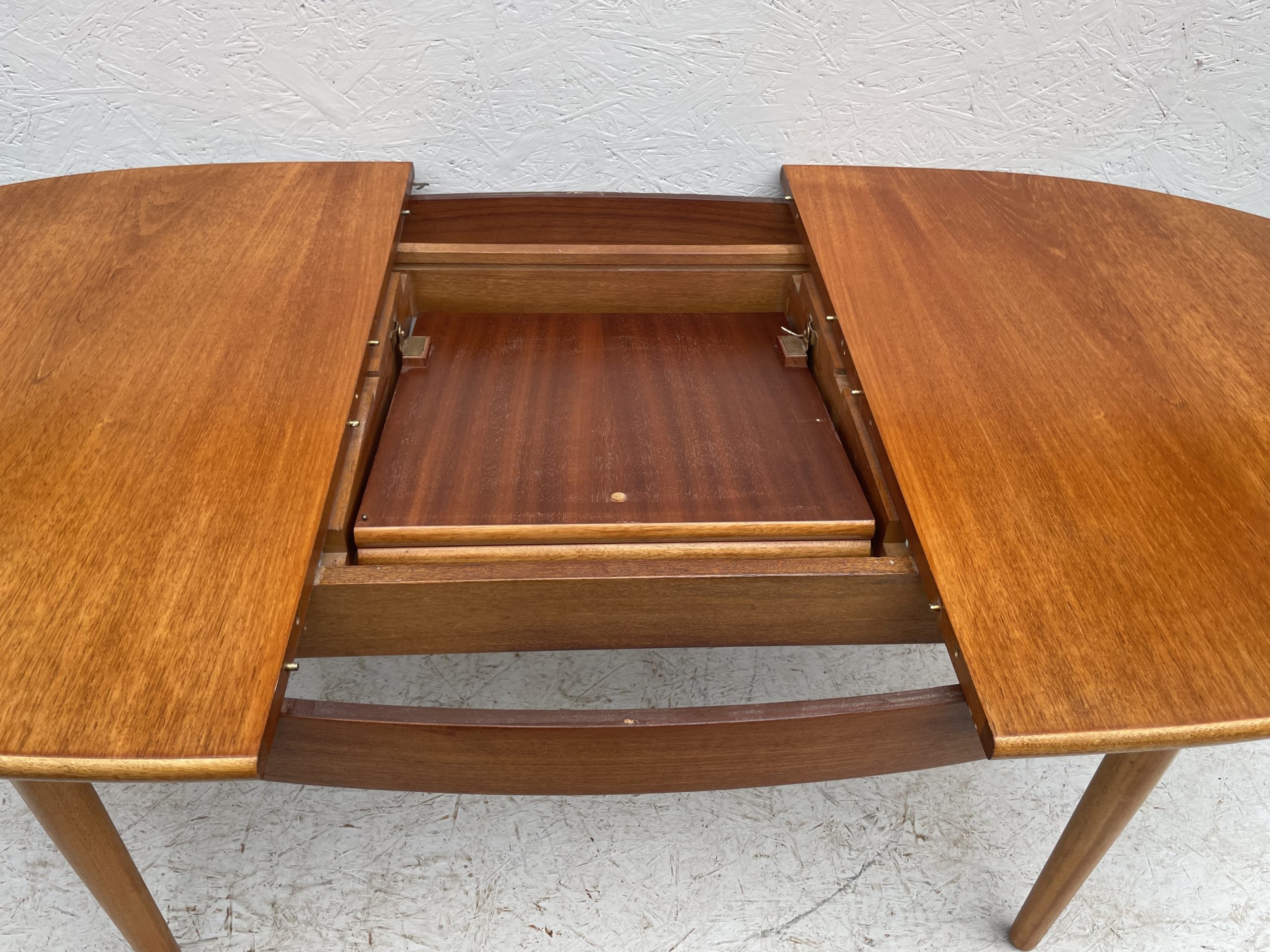 A high quality, neatly proportioned, oval, extendable dining table. Although there is no maker’s mark it fits with Jentique catalogue records and has the Danish design style that influenced their furniture of this period.